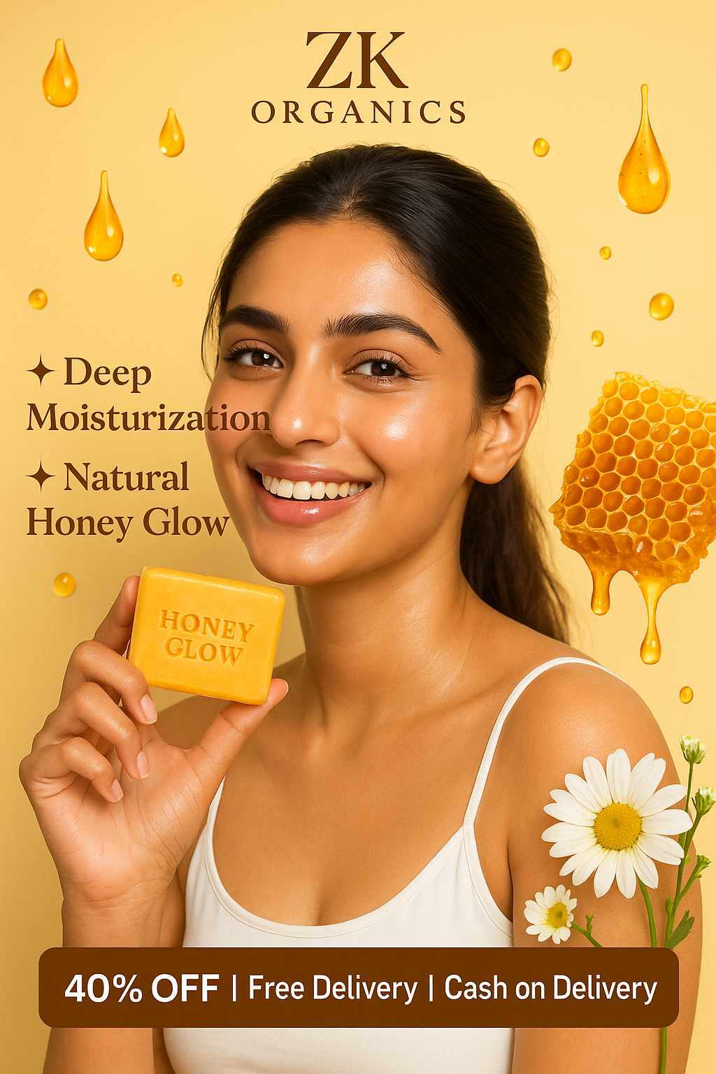 🌿 ZK Organics Aloe Honey Soap 🍯✨قدرتی نکھار اور نرم چمکدار جلد کے لیے بہترین انتخاب 🍯 شہد (Honey):شہد ایک قدرتی موئسچرائزر ہے جو جلد کی گہرائی تک جا کر اسے نرم و ملائم بناتا ہے۔ اس میں اینٹی بیکٹیریل خصوصیات بھی ہیں جو جلد کو دانوں اور جراثیم سے...